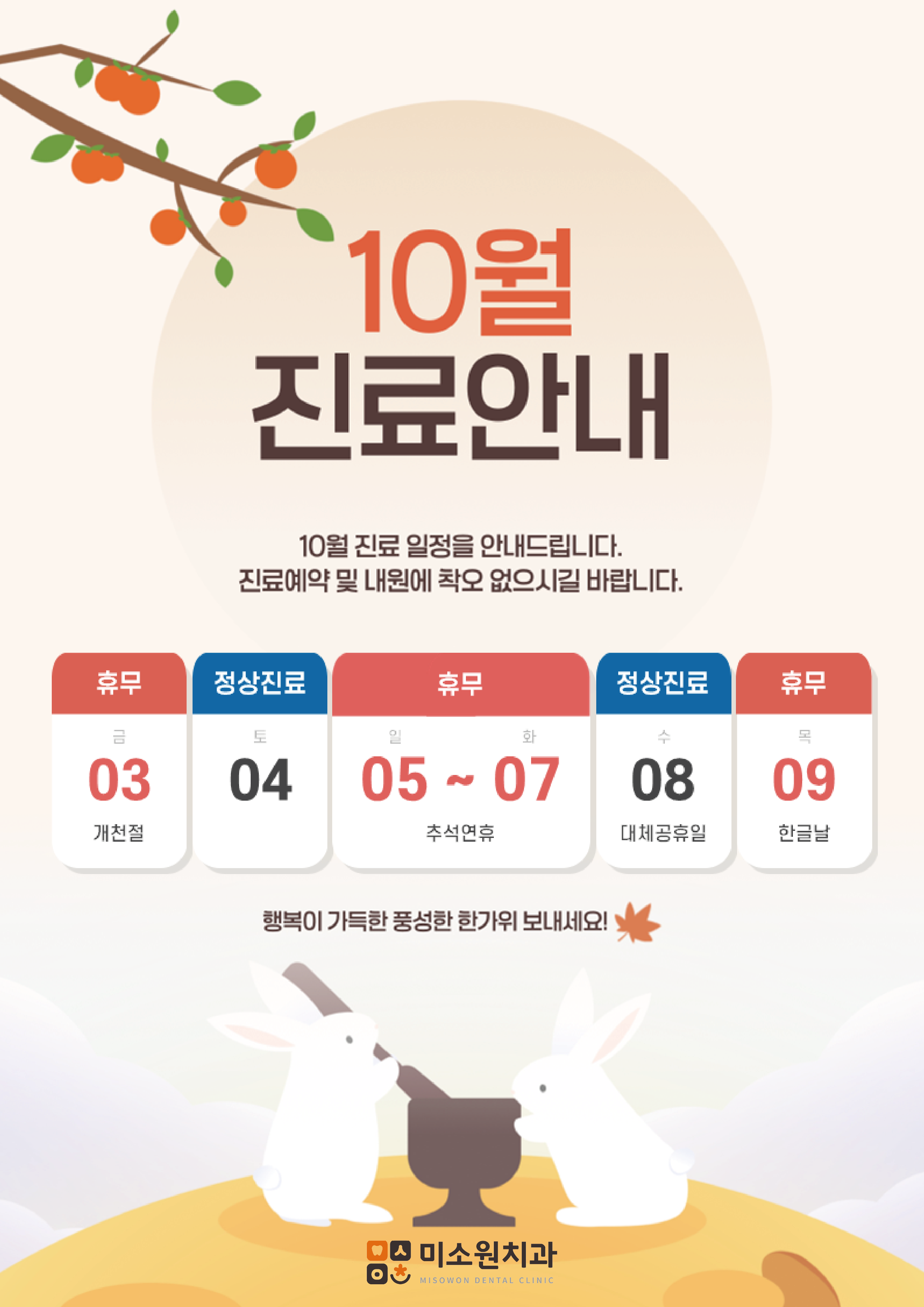 미소원 치과 10월 진료일정